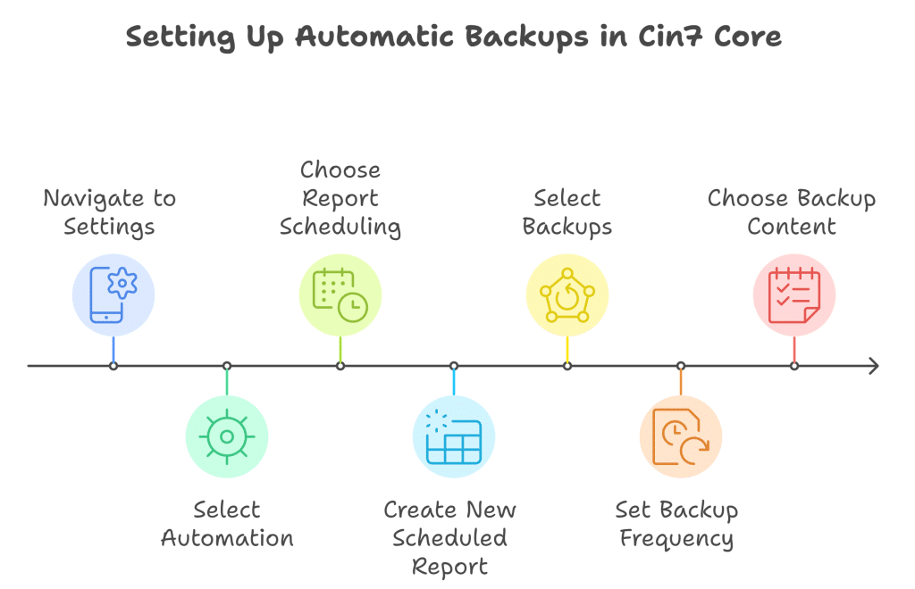 Cin7 Core makes automatic backups simple through the Scheduled Reports module. Here’s how to set it up:
